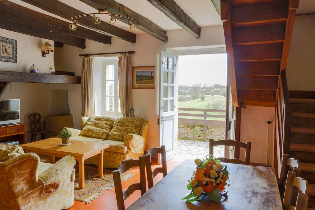 La Ferme is a converted 18th century stone farmhouse, sleeps 6, which overlooks the Château and its grounds , with the Célé valley beyond. Outside there is a private courtyard, with a seating area and a private garden shaded by walnut trees. A private 10 x 5 metre pool sits on a terrace just below the house. If you have a group larger than 6 you will need to also book La Fermette, which contains a bedroom with a double and a single bed, and a toilet/shower room.